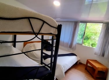 Alojamiento cómodo con baño privado y vista al río. Solo 130.000 COP por noche pareja con opción de pago de persona adicional.