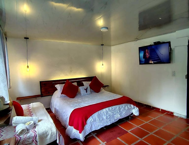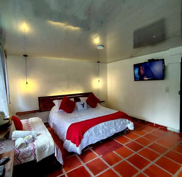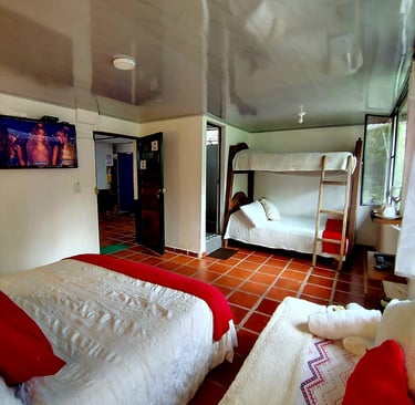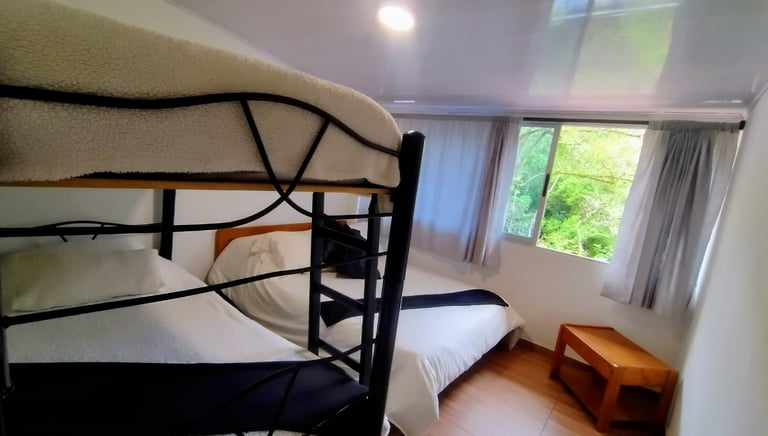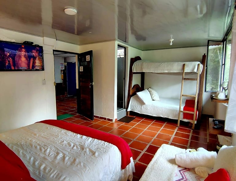 Habitación con baño privado y vista al río. Solo 130.000 COP por noche pareja con opción de pago de persona adicional.