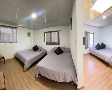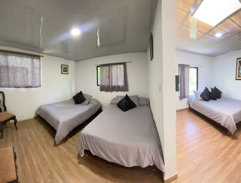 Habitación con cama doble, baño privado y vista al río. Ideal para familias numerosas o en pareja.